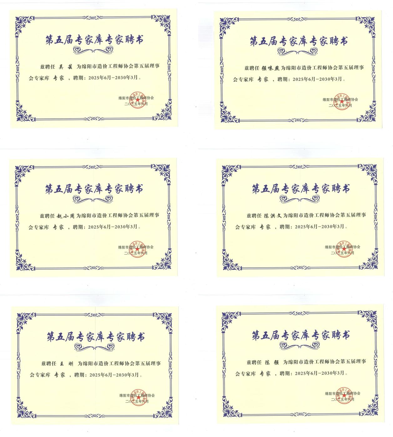 益安项管八位一级造价工程师入选绵阳市造价工程师协会第五届专家委员会及专家库